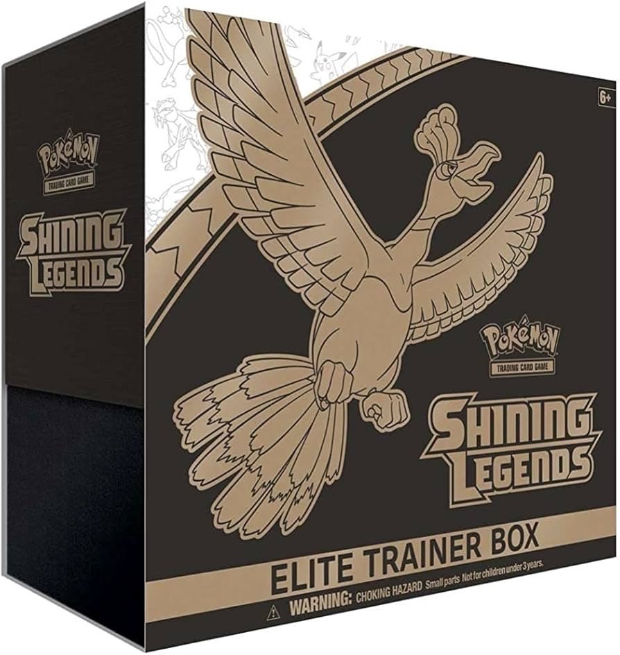 The Shining Legends Elite Trainer Box is a special Pokémon TCG set featuring shiny Pokémon and powerful legendary cards. This premium ETB is highly desirable among collectors.