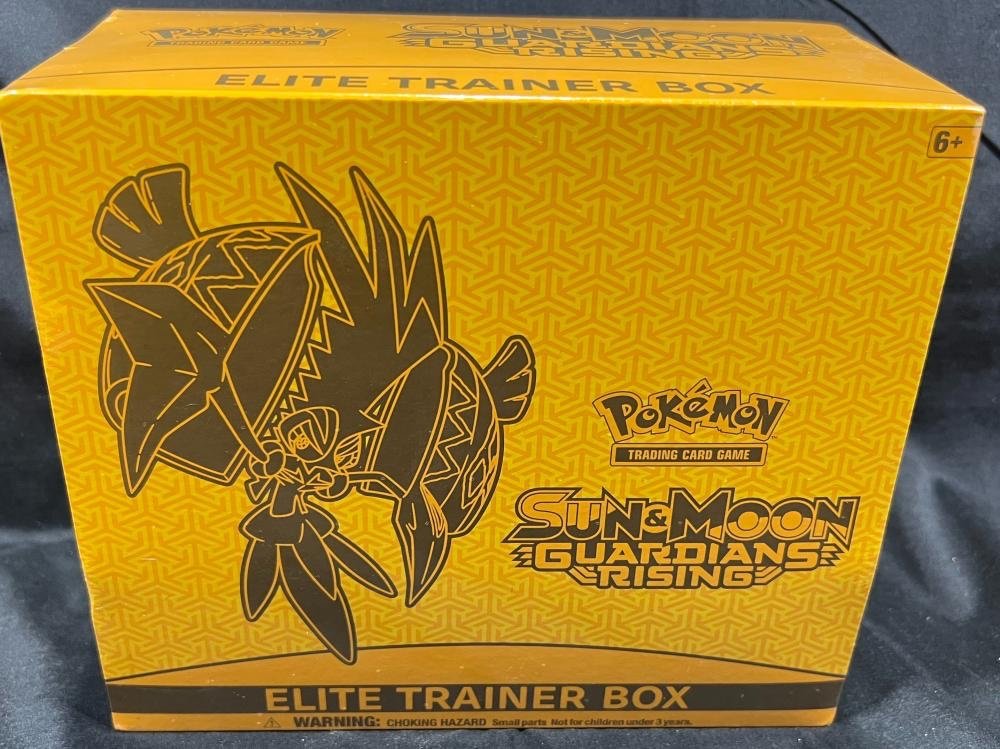 The Guardians Rising Elite Trainer Box features booster packs and accessories from the Guardians Rising expansion, offering exciting pulls and collectible value.